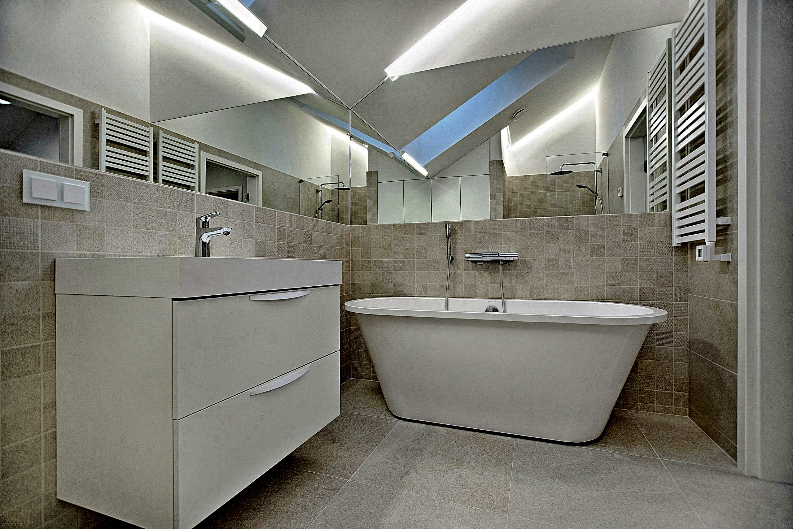 Proje kapsamında salon altyapısı yeniden düzenlenmiş, tüm tesisatlar ve ıslak zeminler modern standartlara uygun şekilde yenilenmiştir. Villada bulunan iki banyo, çağdaş malzeme ve fonksiyonel çözümlemeler ile yeniden tasarlanmış, hem estetik hem de uzun ömürlü kullanım hedeflenmiştir. Açık ve ada mutfak yerleşimi ile salon ve yemek alanı arasında akışkan bir ilişki sağlanmış, modern mutfak dolapları ve tezgah çalışmaları ile hem görsellik hem de kullanım pratikliği artırılmıştır.